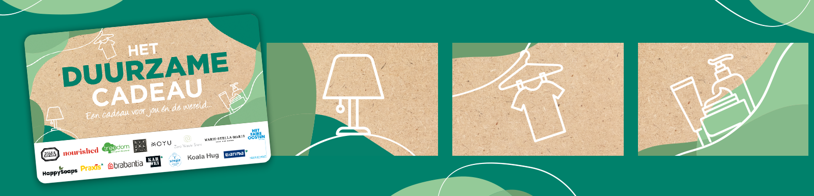 Bij Het Duurzame Cadeau gaan we voor zo duurzaam mogelijk! Zo zijn onze partners zorgvuldig gekozen op basis van duurzaamheid en is ons inpakpapier gemaakt met het FSC-logo. Dit betekent dat voor alle bomen die gekapt worden voor ons inpakpapier, worden er weer nieuwe bomen in de plaats geplant. Ook kun je bijvoorbeeld bij onze partner Praxis, Gamma en Karwei Het Duurzame Cadeau alleen gebruiken om producten af te rekenen die zijn bekroond met de duurzaamheidssticker.